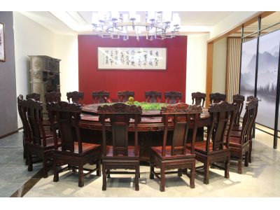 3.2米雕花电动圆餐台配20张金玉满堂椅