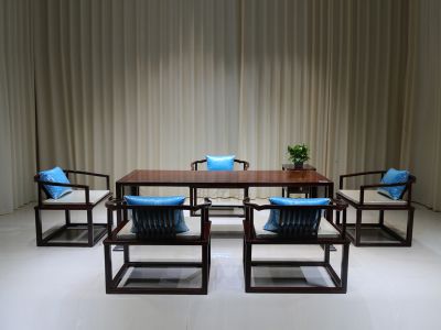 2.18米禅味茶台配5椅配垫