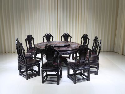 1.66米如意檀雕餐台配10椅